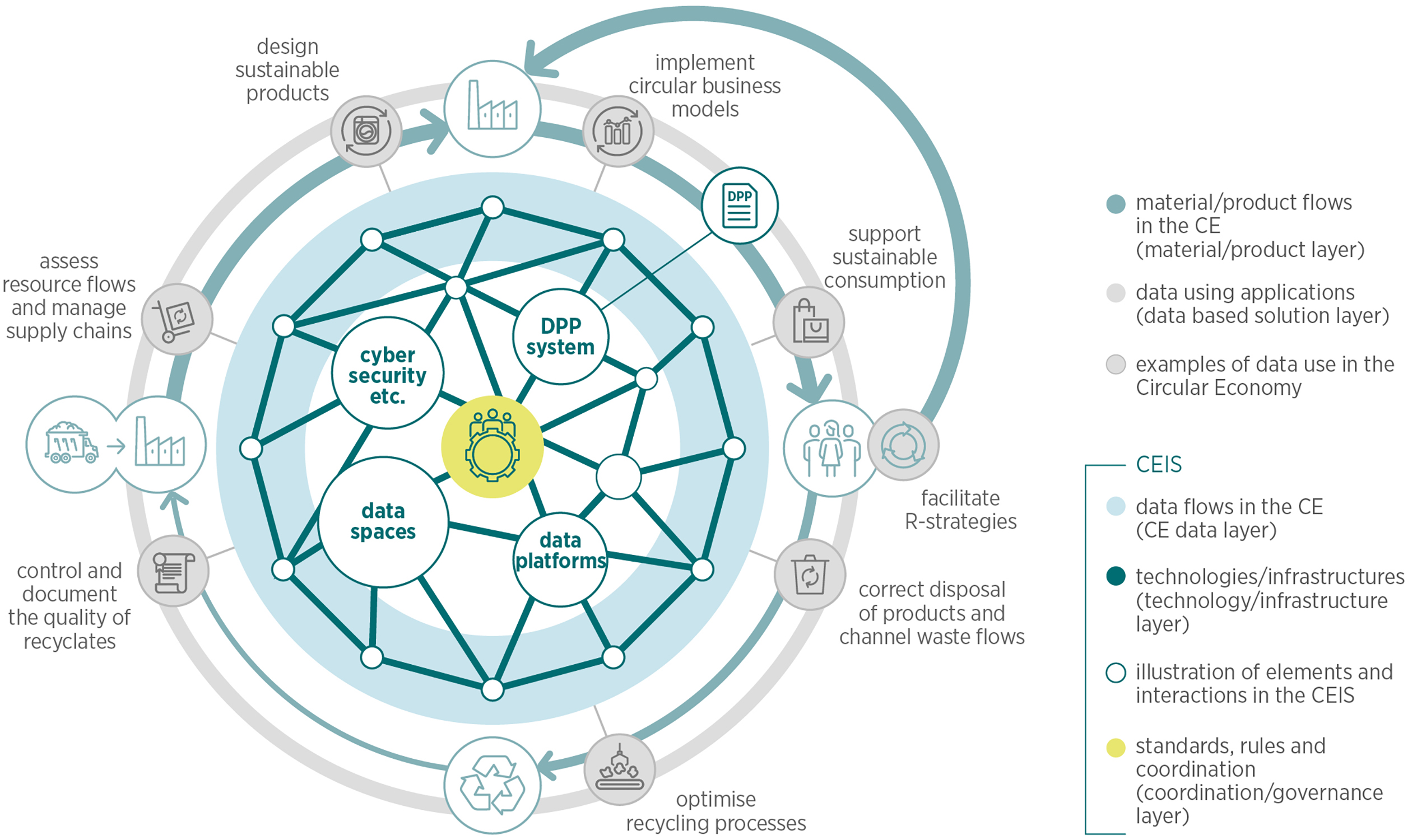 The Circular Economy Information Ecosystem (CEIS) is at the centre of this development. It describes the entirety of all digital technologies, infrastructures, processes and stakeholders necessary for a data-based circular economy – including the required standards, rules and coordination mechanisms.