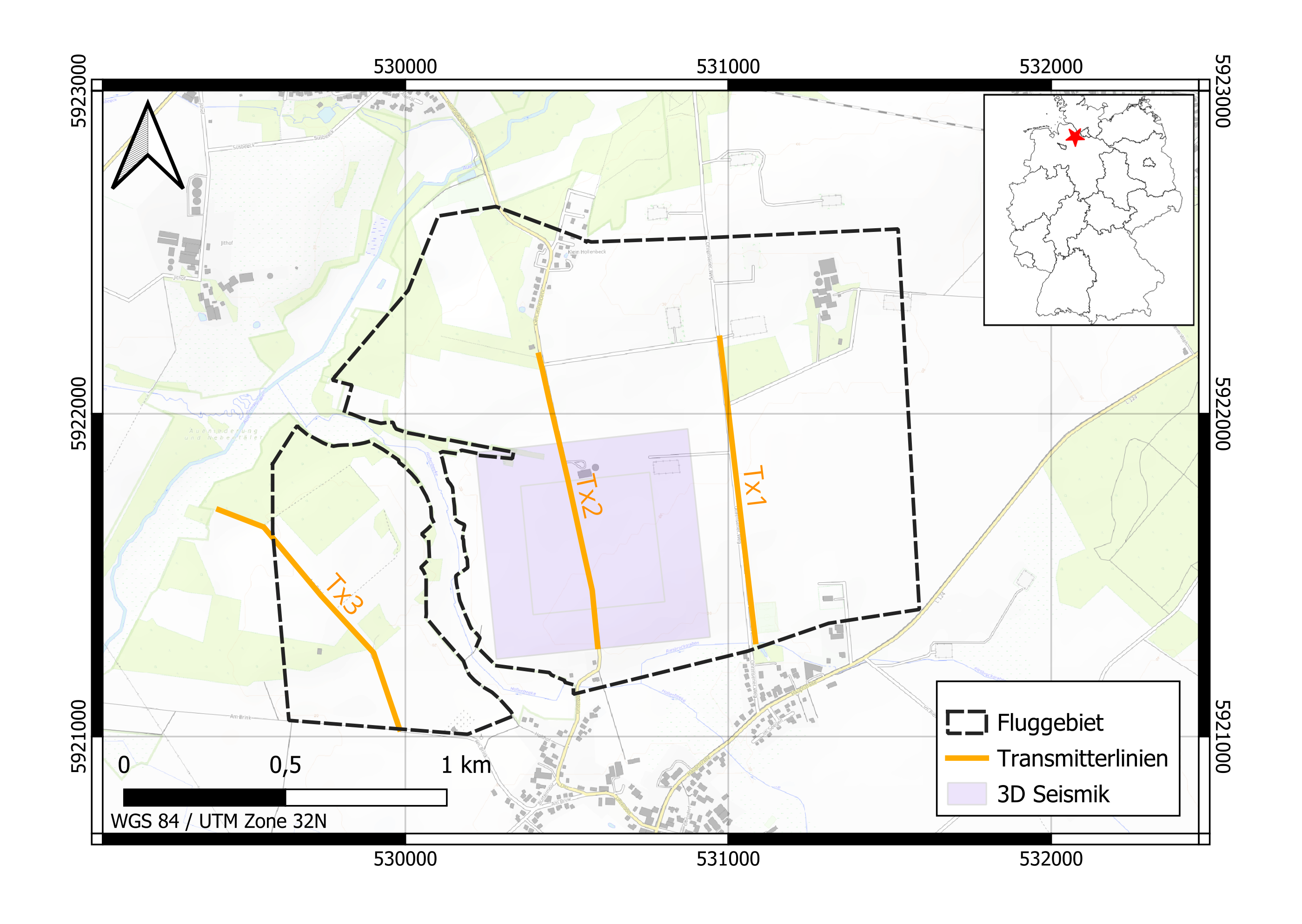 Die geplanten Messflüge werden durch die Universität Münster durchgeführt und decken die seismisch erkundete Fläche nördlich von Hollenbeck vollständig ab. Sie sollen in Kombination mit den seismischen Strukturbildern des Untergrundes zusätzliche Informationen über den Tongehalt und die Salzkonzentration im Grundwasser liefern. Diese Aussagen lassen sich, nach geeigneter Kalibrierung, aus Bildern der elektrischen Leitfähigkeitsverteilung treffen. Die geophysikalischen Messungen helfen somit, die geologischen Strukturen im Untergrund hinsichtlich ihrer Materialeigenschaften zu charakterisieren.