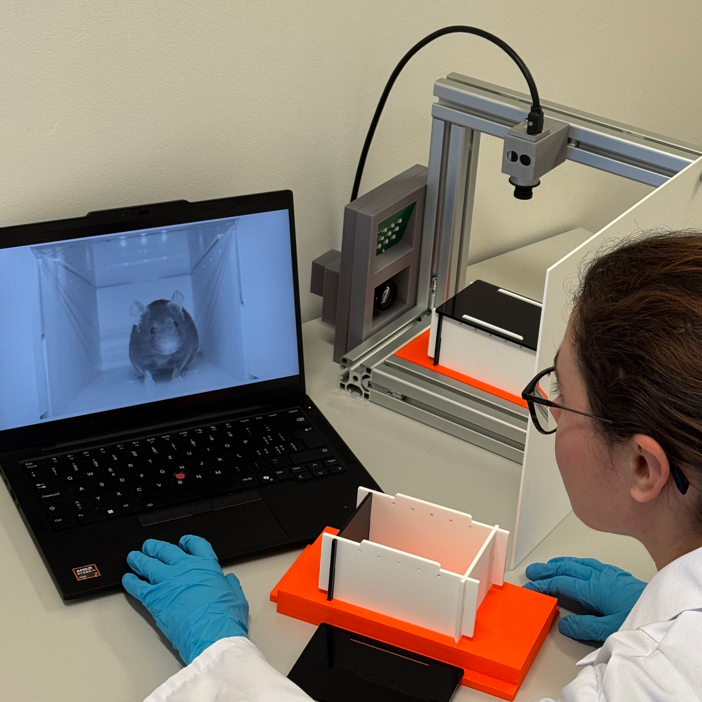 Die beiden Kameras erfassen den Körper und das Gesicht der Maus automatisch und geben Hinweise darauf, wie das Tier sich fühlt. Dadurch lassen sich subtile Anzeichen von Schmerz und Unwohlsein erkennen, die sich häufig im Gesichtsausdruck von Nagetieren zeigen – an zusammengekniffenen Augen, einer Wölbung von Nase und Wangen, einer veränderten Ohrenstellung oder an der Ausrichtung der Schnurrhaare.