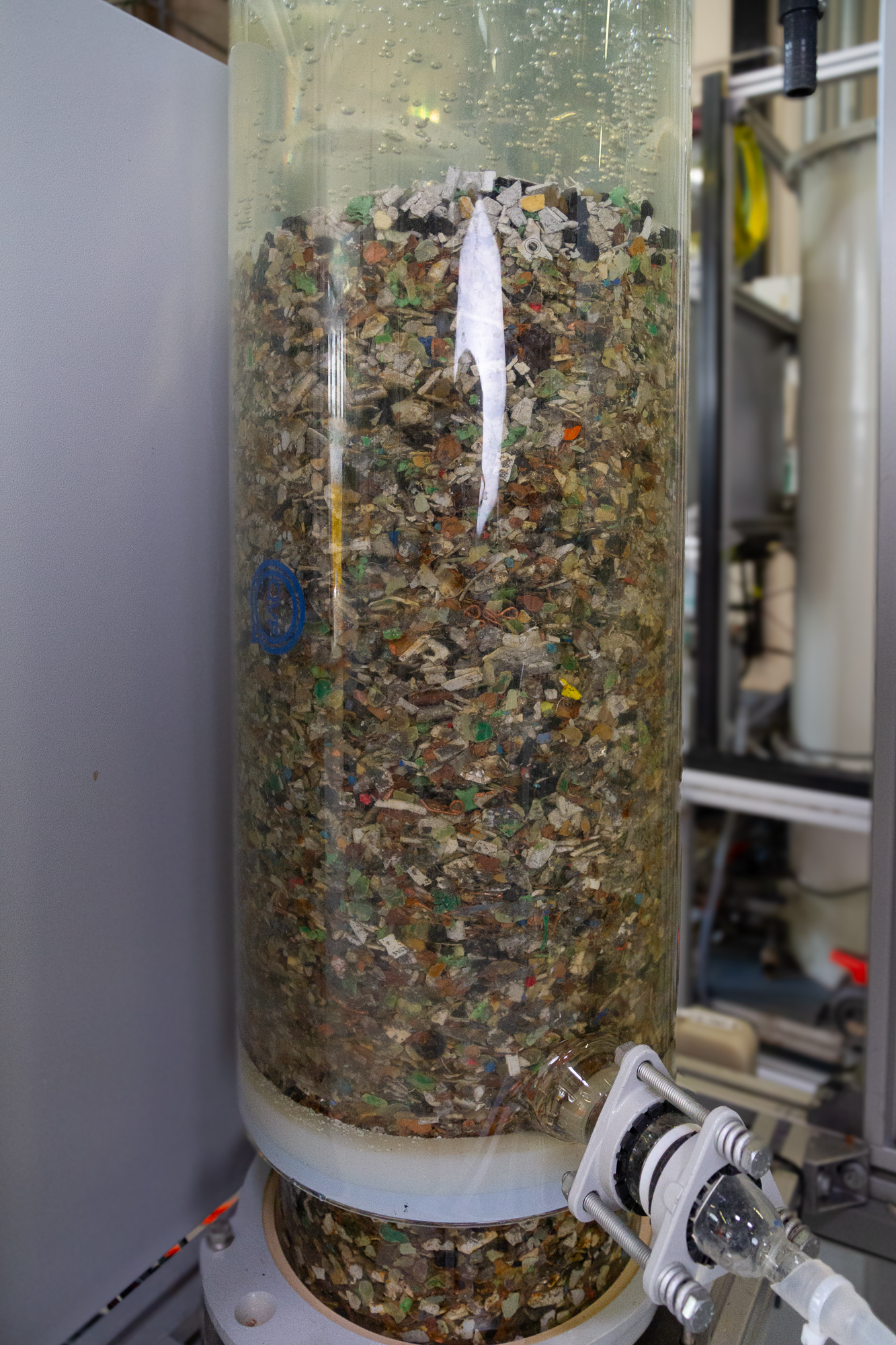 Mit Mikroorganismen und Mikroalgen lassen sich wertvolle Metalle aus Elektroschrott zurückgewinnen – umweltfreundlich, selektiv und mit Potenzial für den industriellen Einsatz. Das konnten Forschende des Fraunhofer-Instituts für Grenzflächen- und Bioverfahrenstechnik IGB in einer Studie nachweisen. Auf der IFAT 2026, der Leitmesse für Umwelttechnologien in München, demonstriert das IGB anhand eines Festbettreaktors, wie dieses biologische Recycling funktioniert.