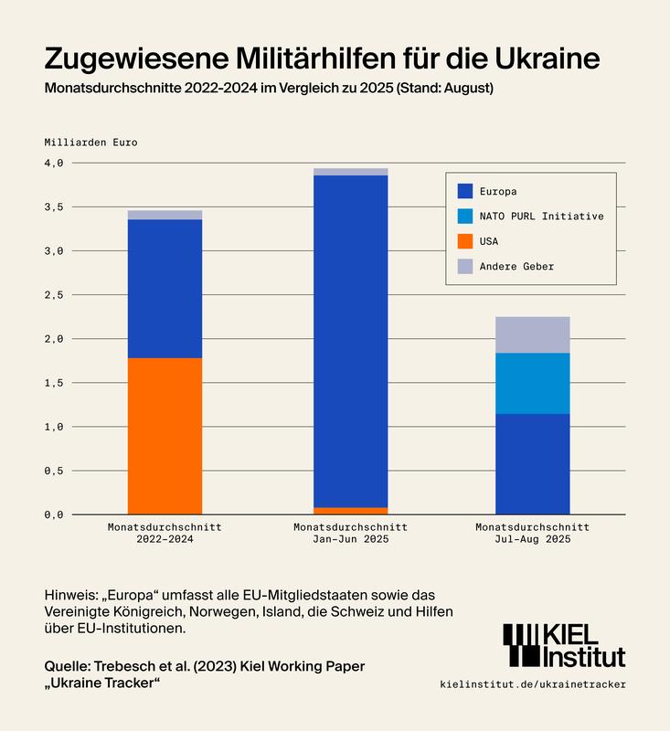Wirtschaft & Politik 14.10.2025 11:25 Forschungs- / Wissenstransfer Ukraine Support Tracker: Militärhilfe sinkt drastisch ein – trotz neuer NATO-Initiative